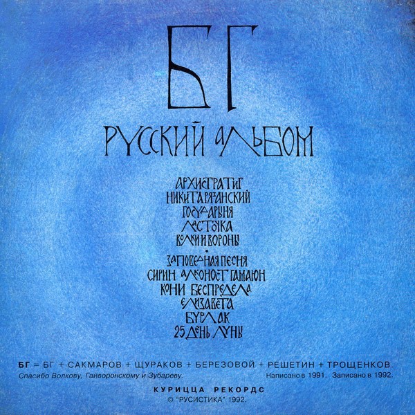 Performer – Решетин*, БГ*, Сакмаров*, Трощенков*, Березовой*, Щураков*