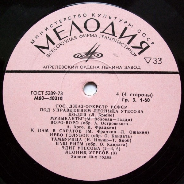 Леонид Утесов, Государственный Джаз-оркестр РСФСР - Записи 30-40х Годов