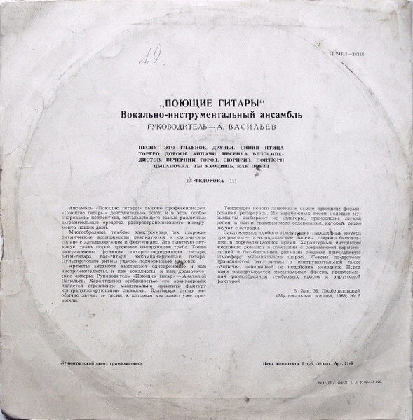 Производитель грампластинки – Ленинградский Завод Грампластинок