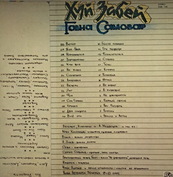 Лейбл: Popa Begemota Records – RGM 7138