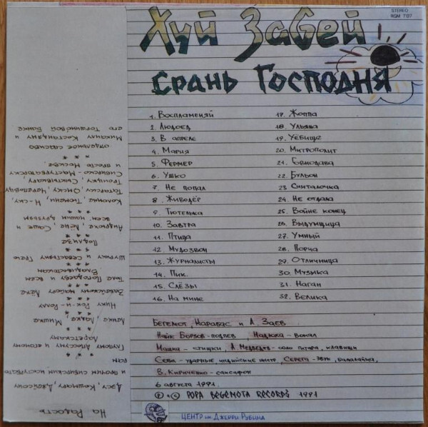 (с) Попа Бегемота Рекордз 6 августа 1991