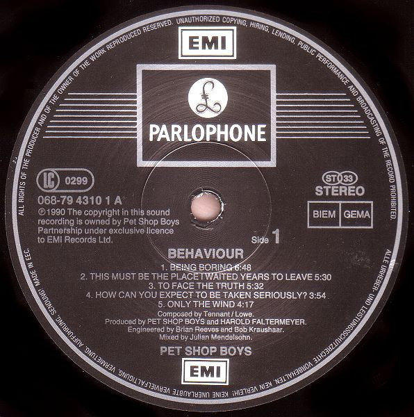 ℗ 1990 The copyright in this sound recording is owned by Pet Shop Boys Partnership under exclusive licence to EMI Records Ltd.